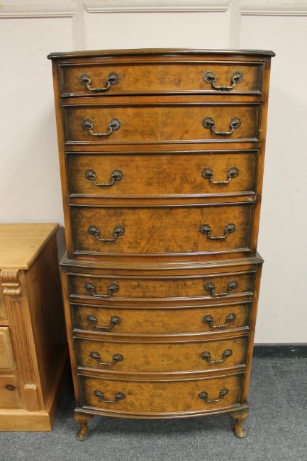 A reproduction walnut double chest, width 67 cm height 140 cm