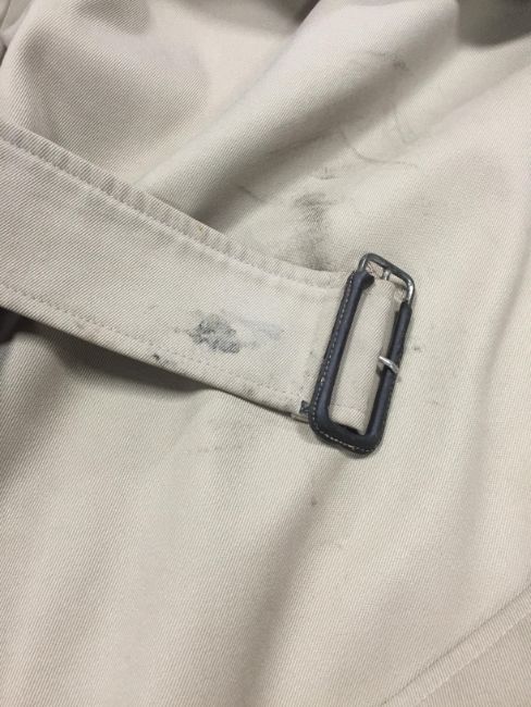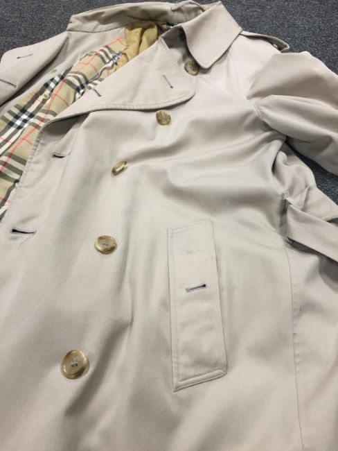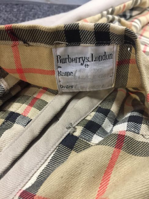 Coat is a size 48 Regular. All appears to be correct and authentic. The interior has some wear, particularly one area. Outside has some staining in areas but mostly good. Scarf in good used / worn condition.