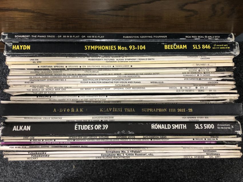 A box of vinyl records