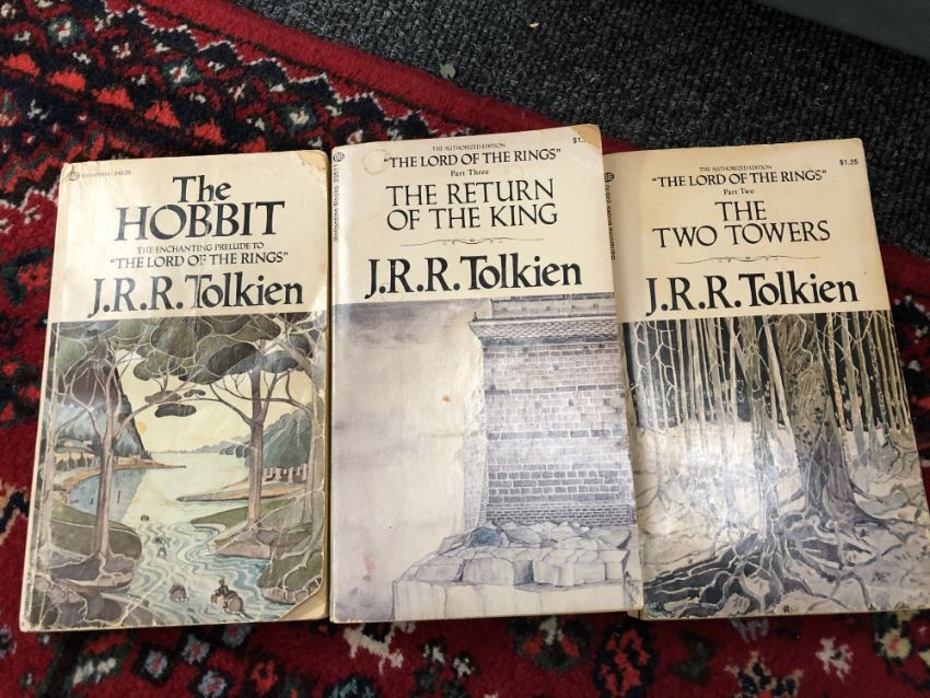 Two boxes of volumes : Tolkien, encyclopedia etc