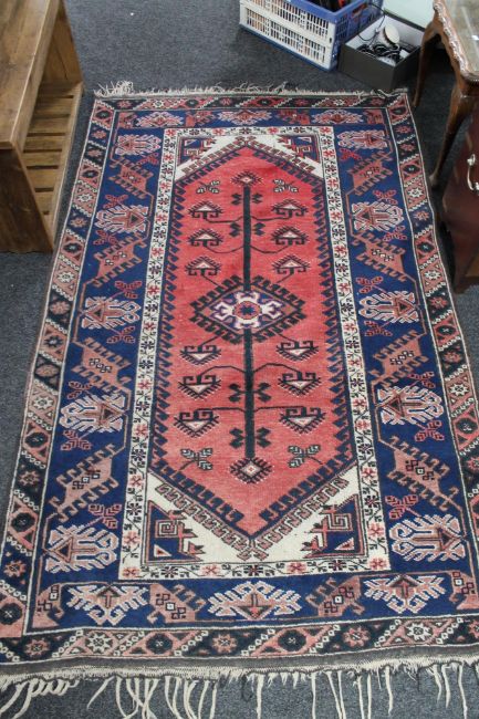 A Persian rug on salmon/blue ground, 198cm by 125cm