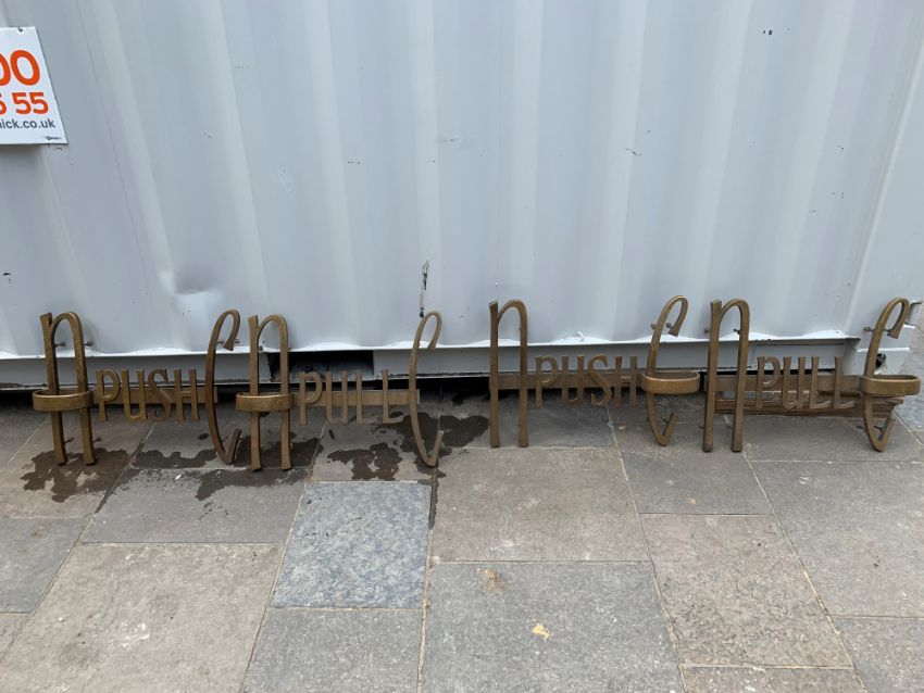 Four cast brass door 'push' & 'pull' handles from doors at the Northern entrance to Newcastle Cathedral. (Two push and Two pull). 500 mm height by 670 mm length.