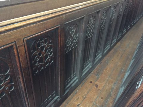 A carved oak panel, length 568 cm, height 86 cm CONDITION REPORT: All lots in this sale are part of the refurbishment of Newcastle Cathedral Church of St. Nicholas. All items are sold 'As Seen' with faults and imperfections as found. The refurbishment of the site means that any access to either view the lots or collect the lots post sale must be done by appointment only, any persons attending the site without this prior arrangement will not be granted access under any circumstance. Anyone bidding on these items must have the capability of collecting the items in person, there are no staff on-site to help move or load vehicles. All items bought in this auction must be collected from the site by no later than Friday 20th March. Any questions regarding items in this sale please email guy@millersauctioneers.co.uk or call 0191 265 80 80.