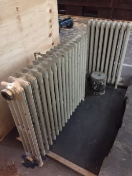 Two cast metal radiators (91 cm wide and 49 cm wide). (2) CONDITION REPORT: All lots in this sale are part of the refurbishment of Newcastle Cathedral Church of St. Nicholas. All items are sold 'As Seen' with faults and imperfections as found. The refurbishment of the site means that any access to either view the lots or collect the lots post sale must be done by appointment only, any persons attending the site without this prior arrangement will not be granted access under any circumstance. Anyone bidding on these items must have the capability of collecting the items in person, there are no staff on-site to help move or load vehicles. All items bought in this auction must be collected from the site by no later than Friday 20th March. Any questions regarding items in this sale please email guy@millersauctioneers.co.uk or call 0191 265 80 80.