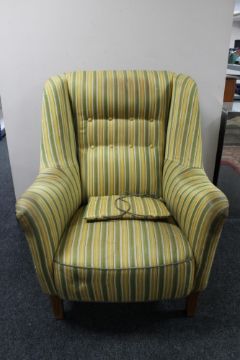 A mid century armchair in two-tone stripe