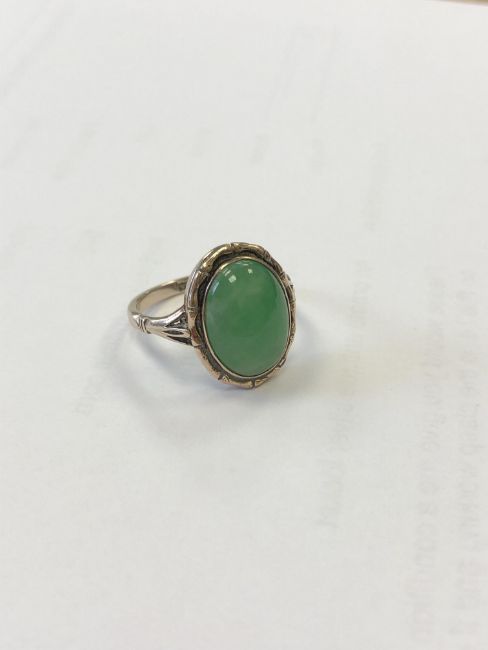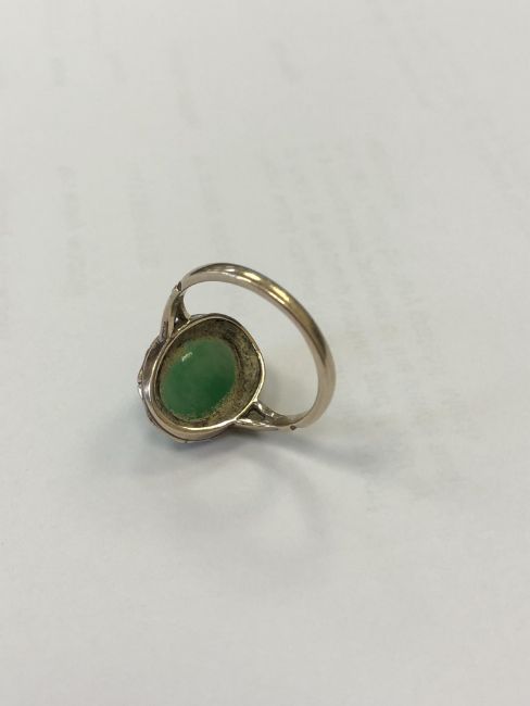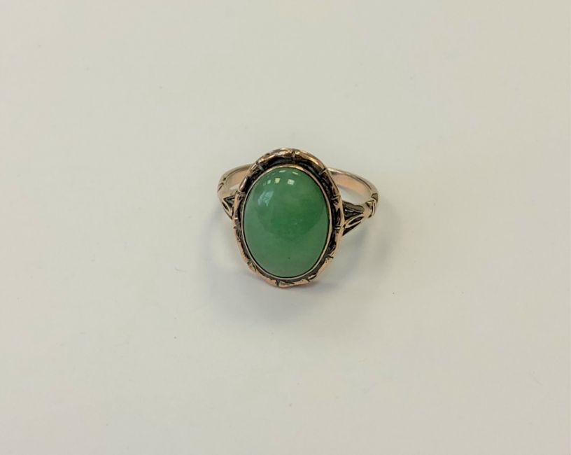 9ct gold. 4.2g. The jade measures 14mm by 10mm by 5mm.