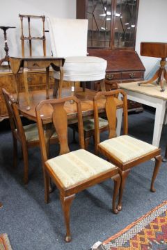 A walnut pull out dining room table and four chairs