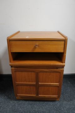 A teak telephone stand fitted with a drawer