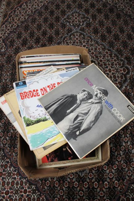 A box of comedy LP's