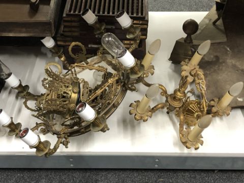 Two ornate continental brass chandeliers