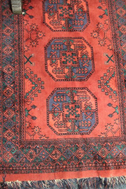 An Afghan Bokhara rug on red ground, 155cm by 98cm