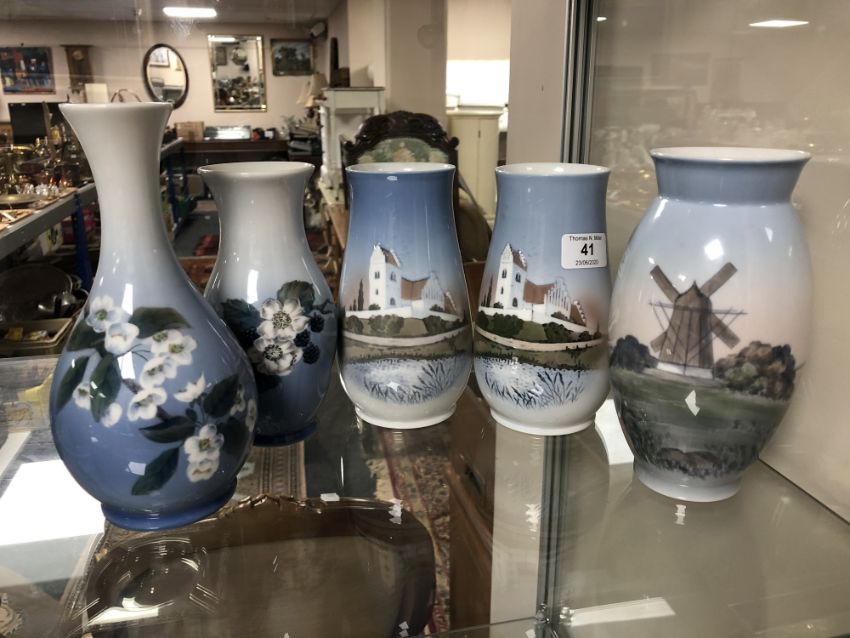 A pair of Bing and Grondahl vases, one other vase and two Royal Copenhagen vases (tallest 22 cm)