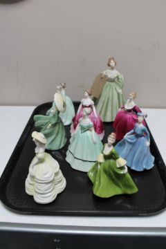 A Coalport Lady's of Fashion figure, Kelly, together with eight further Coalport figures