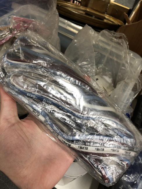 Three boxes of Elvis memorabilia/accessories and a small quantity of LP records - The Beatles etc