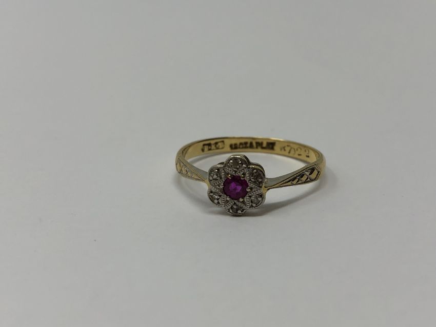An antique 18ct gold ruby and diamond ring