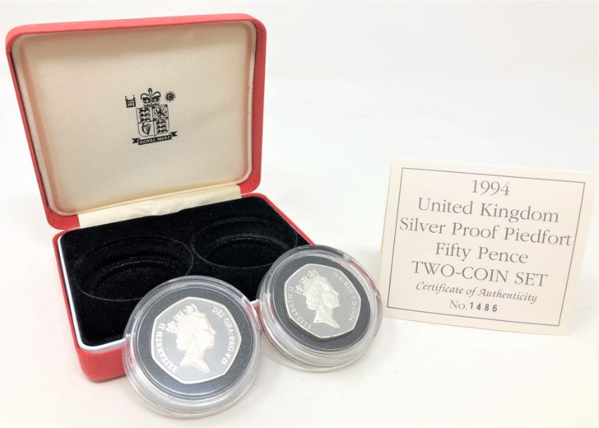 Royal Mint - 1994 United Kingdom silver proof Piedfort fifty pence two-coin set, no. 1486.