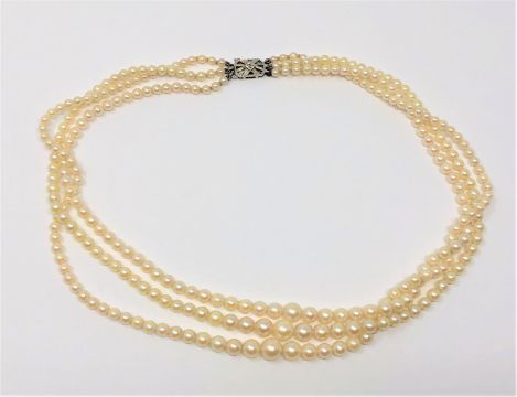 A nice 3-strand pearl necklace with white gold clasp set with diamonds