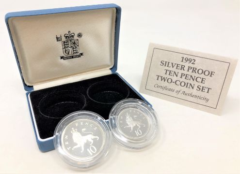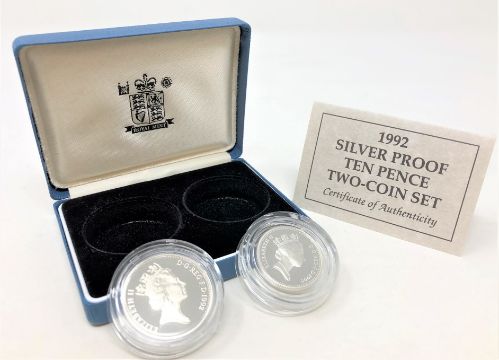 Royal Mint - 1992 silver proof ten pence two-coin set