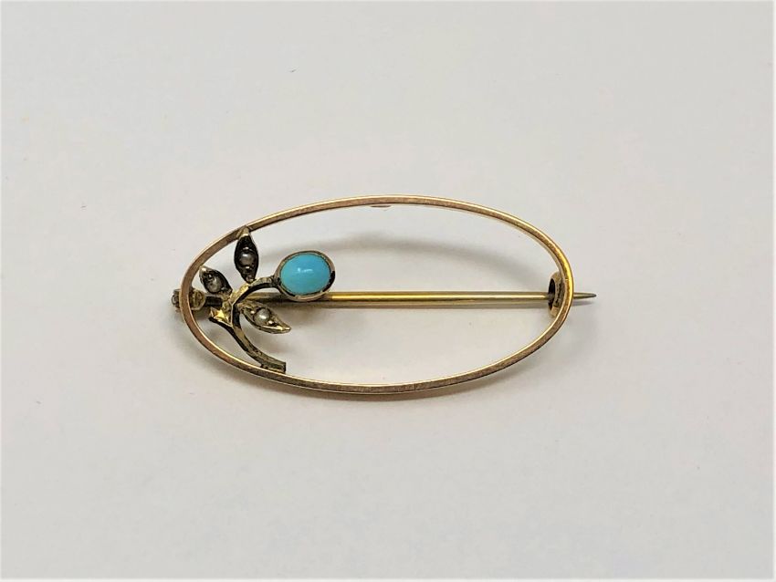 An antique gold turquoise pearl brooch, 2.4g.