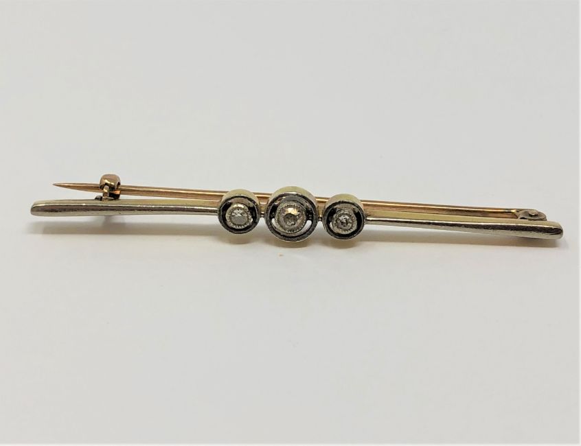 An 18ct gold and platinum three stone diamond brooch, 4.13g.