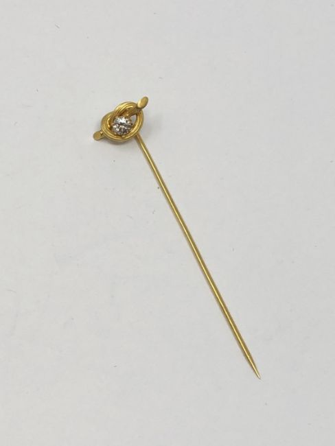 A high carat gold pin set with a good quality diamond approximately 0.25ct, 1.8g.