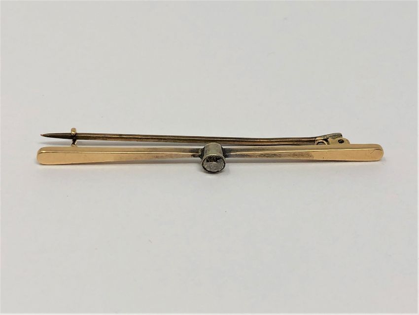 A 15ct gold bar brooch set with a diamond, approximately 0.2ct, 3.65g.