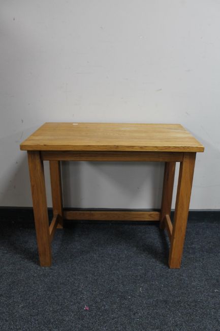 A contemporary oak lamp table