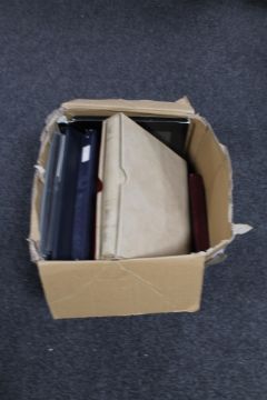 A box of albums and files of first day cover stamps