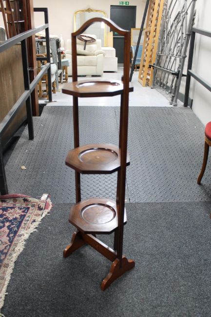 An inlaid mahogany cake stand together with a chair