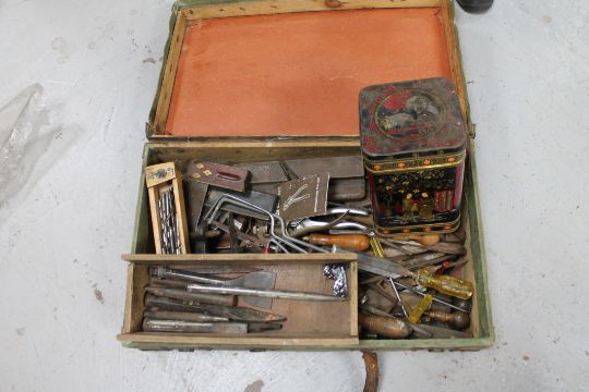 A canvas suitcases containing a quantity of vintage woodworking tools, boxwood ruler etc