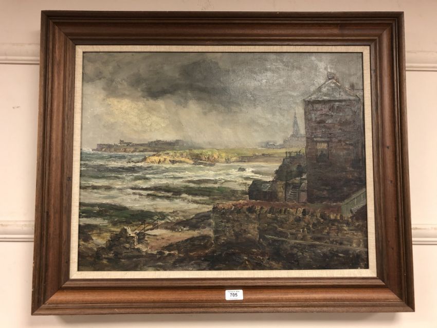 19th century school : coastal scene with choppy waters, oil on canvas, 64 cm x 49 cm