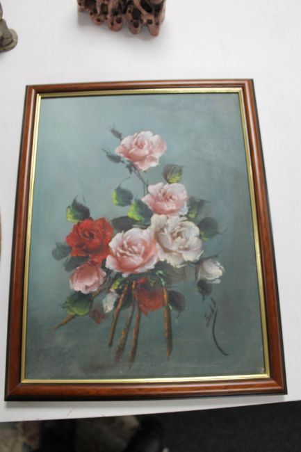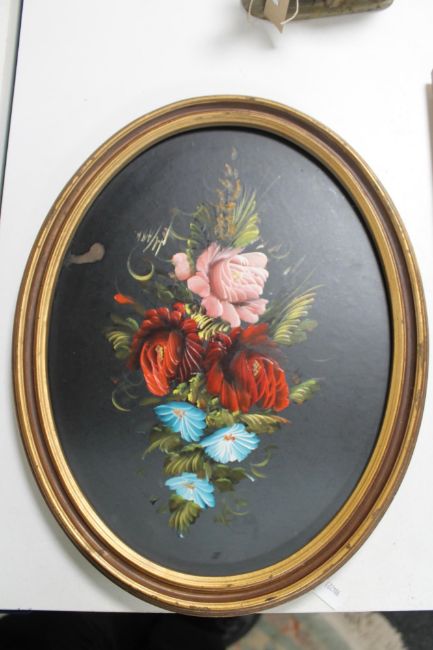 A tray of still life paintings, carved stone figure Water buffalo, further oriental style carving