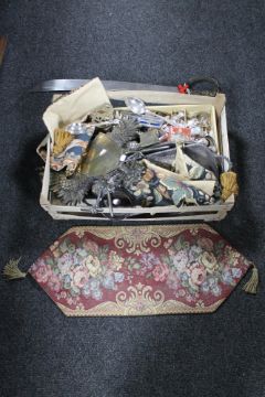 A decorative ornamental sword, plaque, quantity of cutlery, napkin rings etc