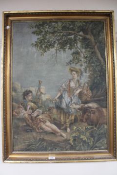A gilt framed needlework picture - Two figures with cattle