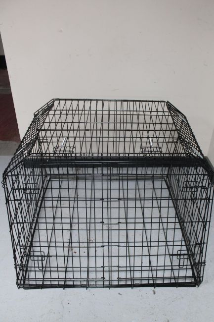 A large metal dog cage
