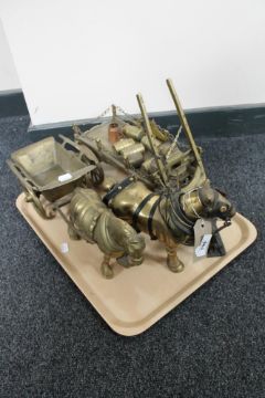 A tray of brass horse and cart ornaments