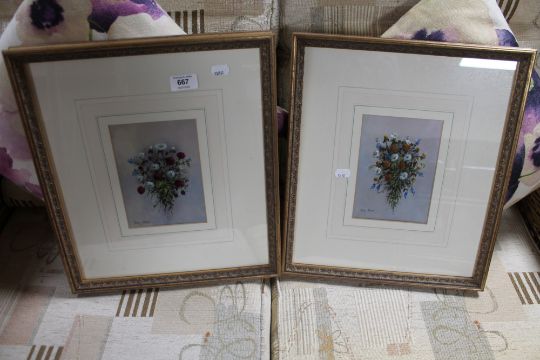 Mary Shaw : Still life with flowers, pair of oils, signed. (2)