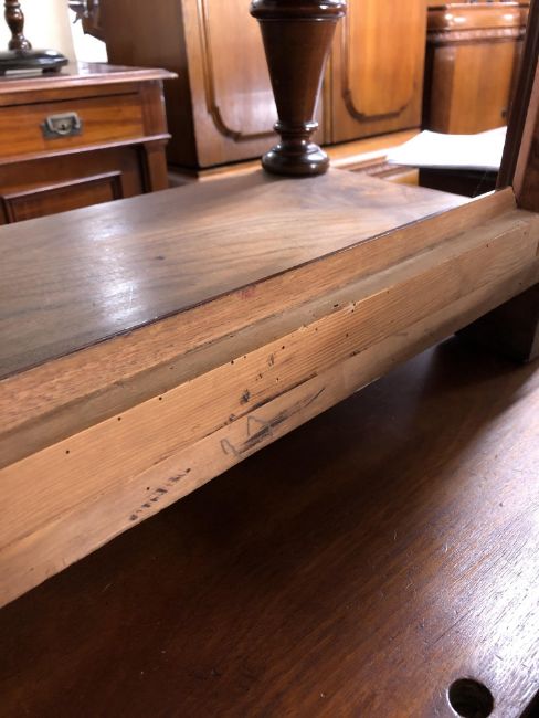 80cm wide by 37cm deep by 49cm high. Watermarks to top. Some worm damage visible, see images.