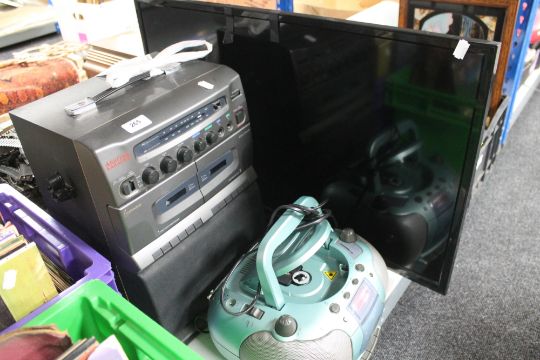 A Karaoke machine together with a mini hifi and a 32" Logik TV with remote control