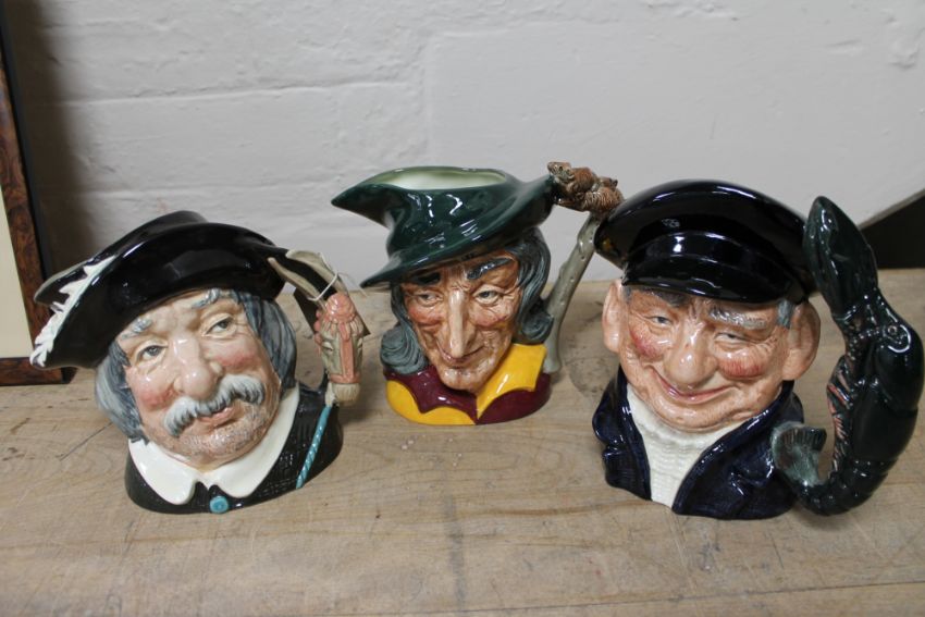 Three Royal Doulton Character jugs - Pied Piper, Sanco Panca and Lobster man