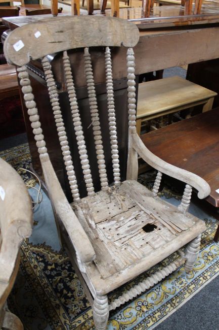 A nineteenth century wooden armchair with bobbin turns