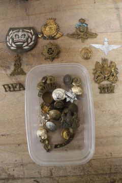 A quantity of military buttons, badges etc