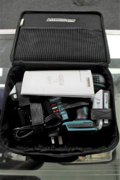 A Makita Lithium ion cordless hammer driver drill, two batteries and charger in case