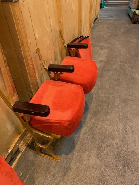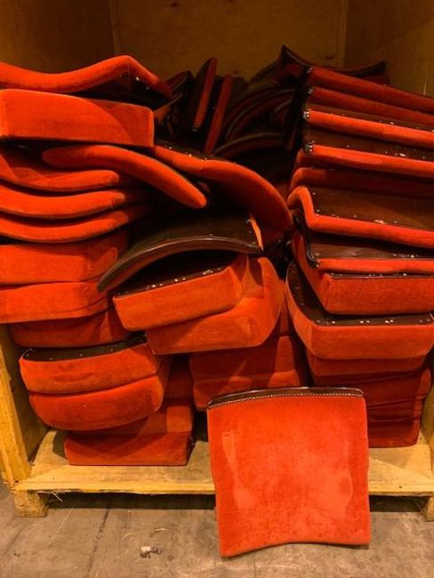 An entire cinema seating plan, early to mid 20th century - approximately 130-140 seats in total. This lot is disassembled and currently in storage in postcode NE12 Newcastle upon Tyne. The lot is not on view. The successful buyer must collect this from a storage facility in NE12 post sale.