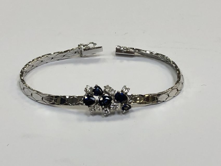 An 18ct white gold sapphire and diamond bracelet, approximately 1ct of diamonds, length 17.5cm.