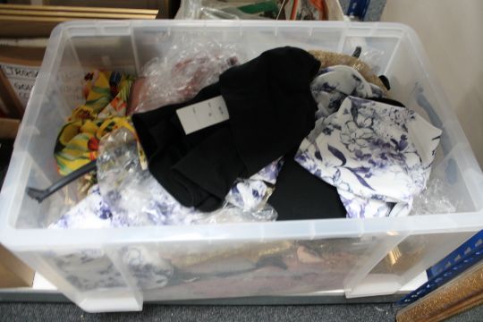 A large crate of new clothing