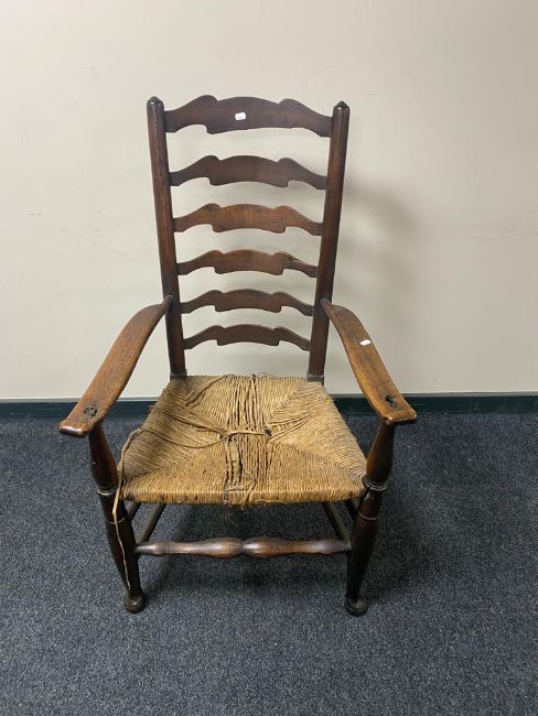 A nineteenth century oak country ladder backed chair