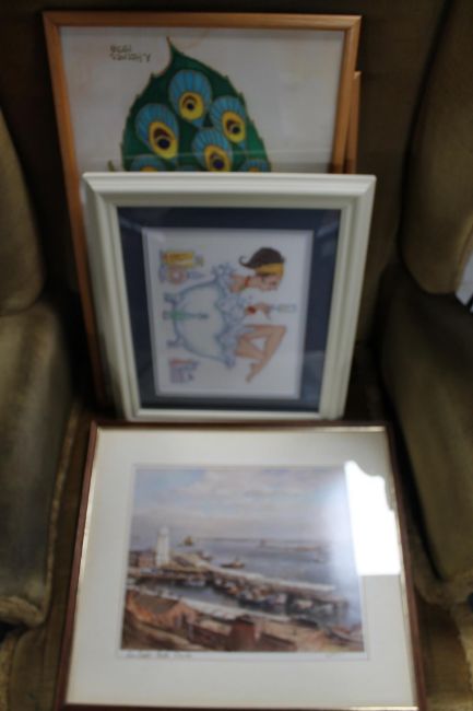 A signed colour print of North Shields by Walter Holmes together with further pictures and prints