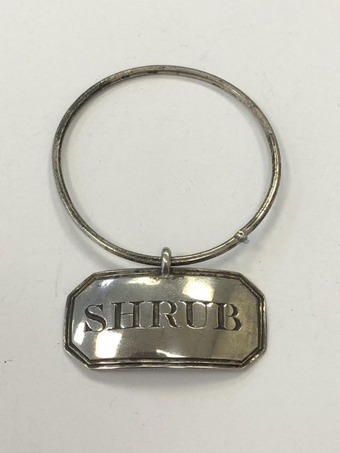 A rare Georgian silver decanter label for Shrub