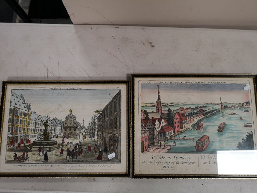 Two antique hand coloured prints - continental landscapes
